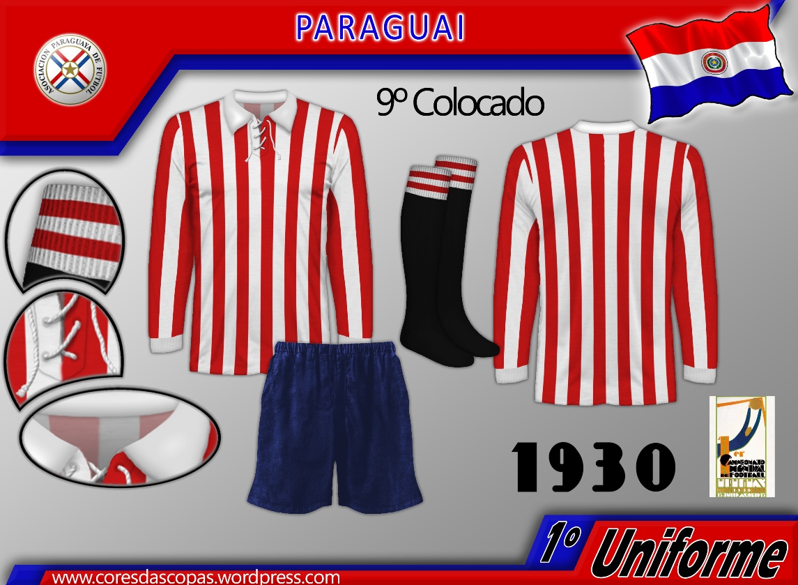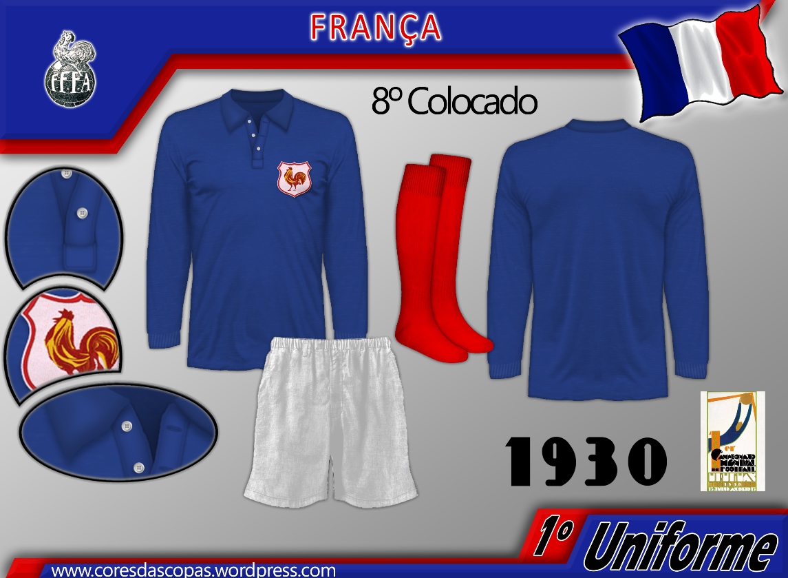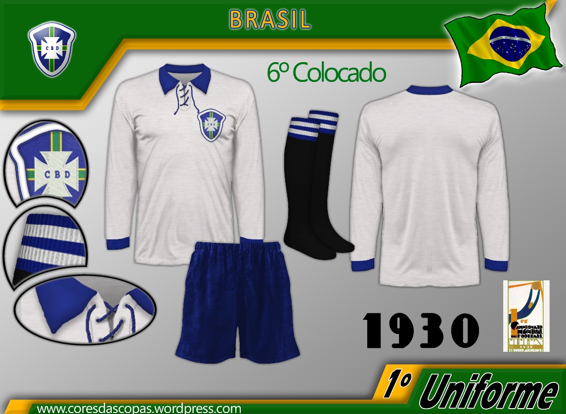 Desde seus primeiros jogos até o início da década de 50 o Brasil jogou com camisas brancas, e assim também foi na copa de 30, com o logotipo da então CBD no peito. O calção era azul e as meias pretas.