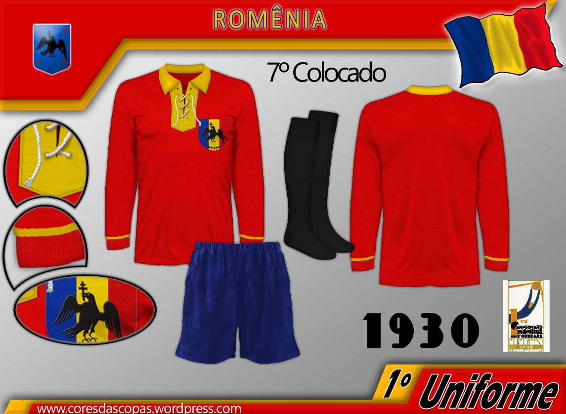 O uniforme do romenos na Copa de 1930 é motivos de muitas divergências, isso porque existem pouquíssimas fotos e muitas interpretações diferentes. Nas poucas fotos existentes a camisa tem um tom muito escuro (nos levando a crer que sua cor era vermelha ou azul) e o calção um t