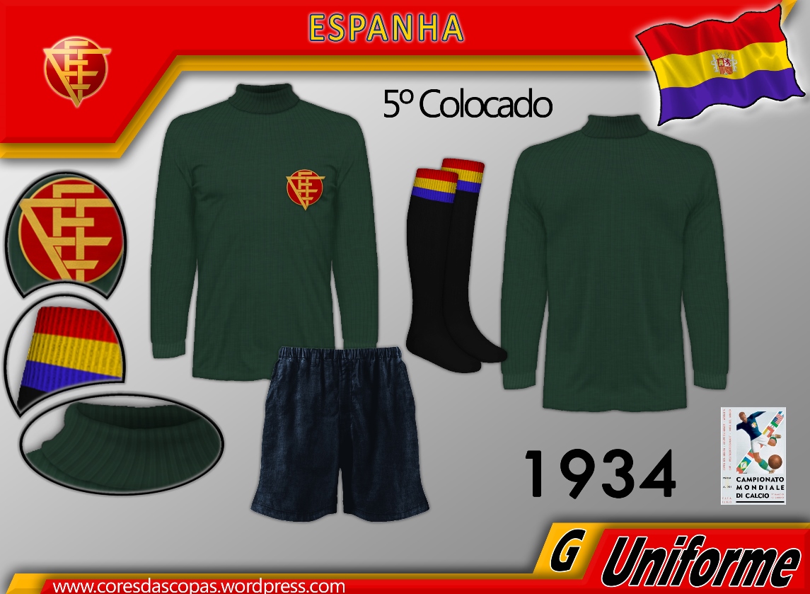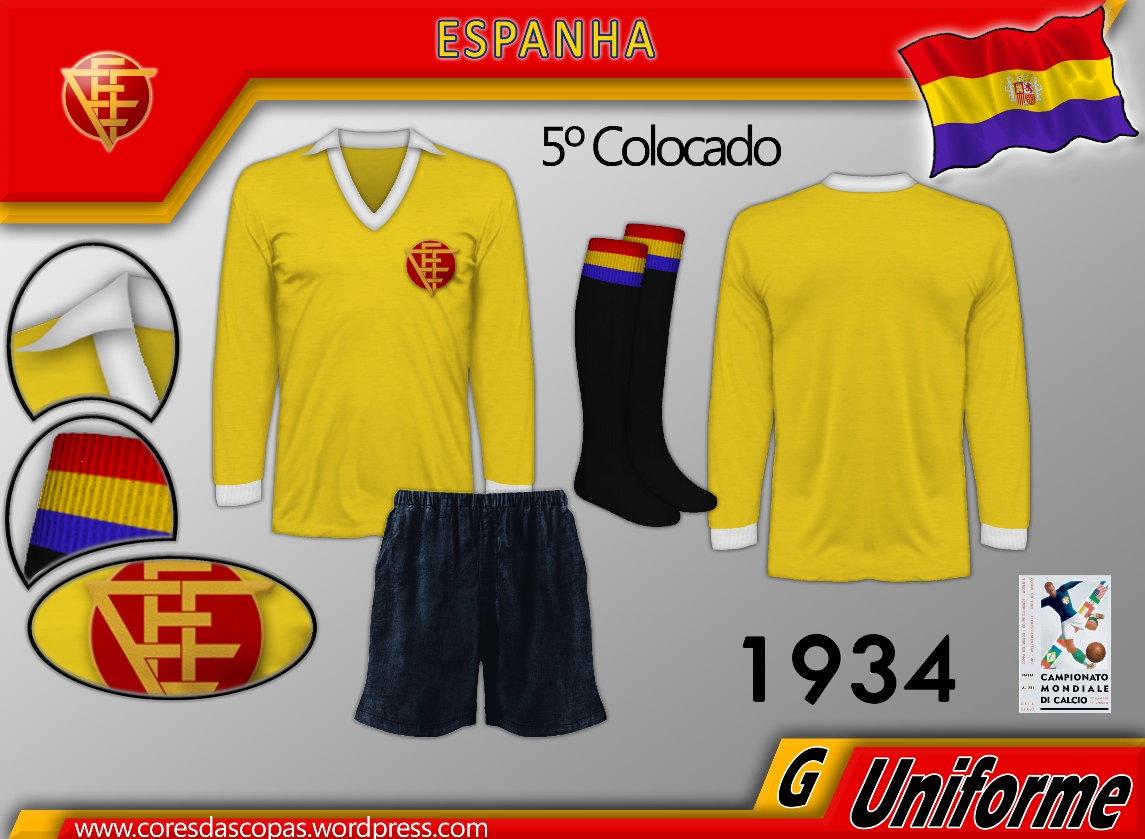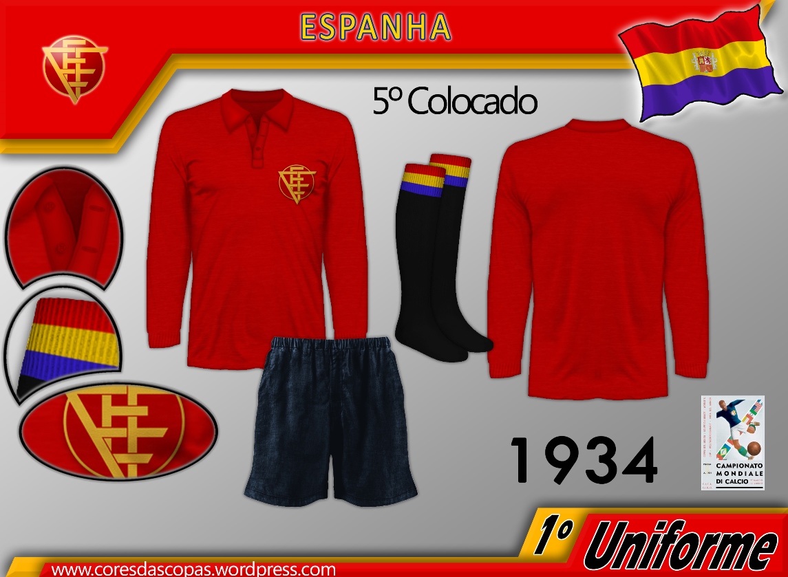 Desde seu primeiro jogo oficial La Furia Roja (a Fúria Vermelha), como ficou conhecida, usa camisas vermelhas, contudo no inicio o calção era branco. Pouco tempo depois o calção passou a ser azul escuro e dessa forma a Seleção Espanhola disputou todas as partidas desse mundial.