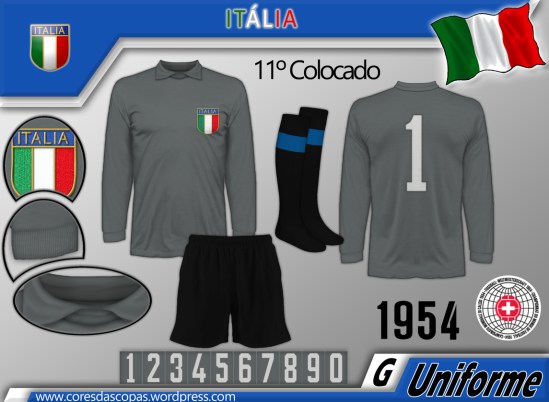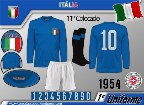 Em 1954 o uniforme principal dos italianos foi o mesmo da Copas anteriores, a tradicional camisa azul, com calções brancos e meias pretas.