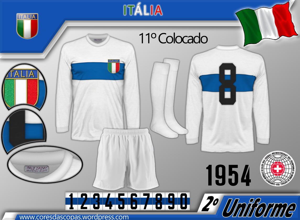 Em 1954 o uniforme principal dos italianos foi o mesmo da Copas anteriores, a tradicional camisa azul, com calções brancos e meias pretas.