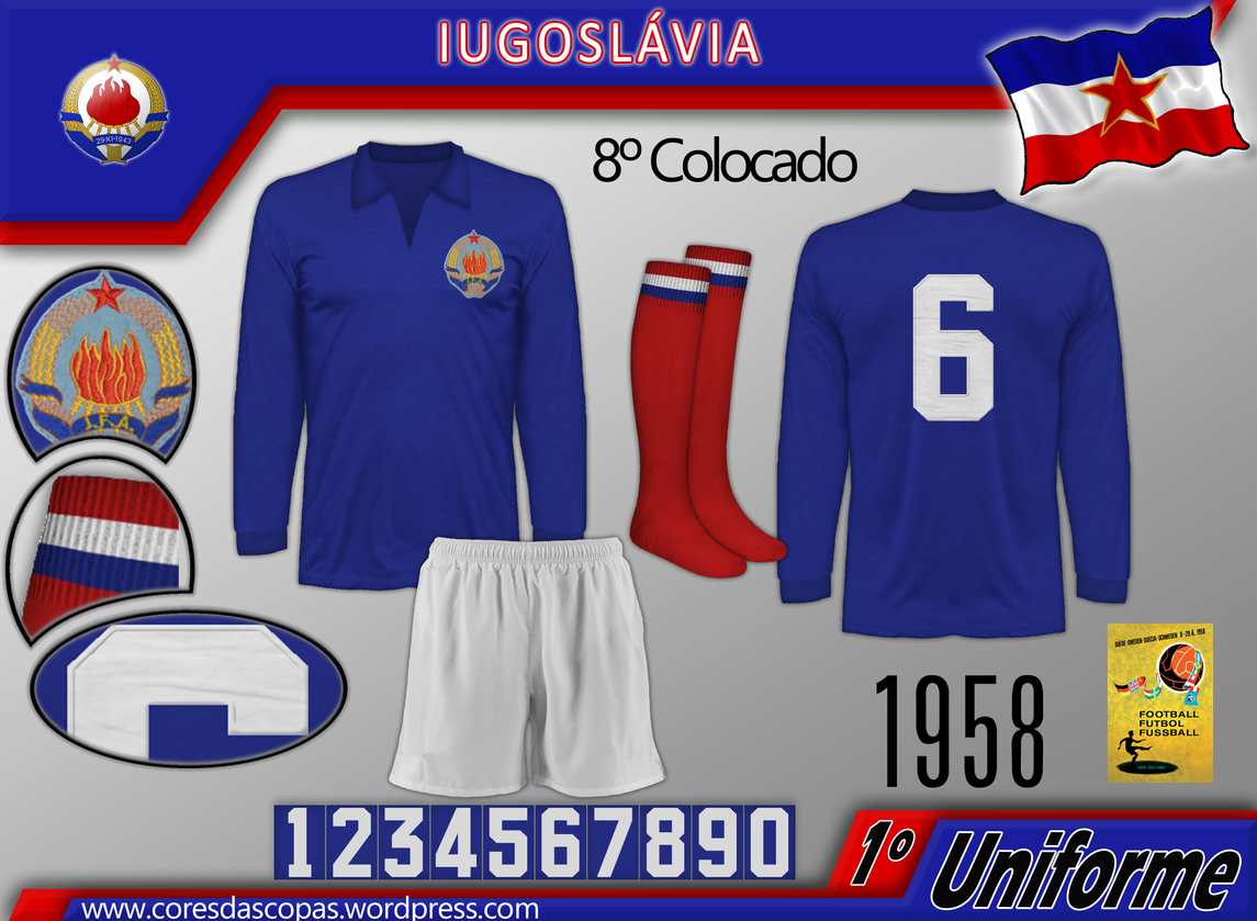 Nessa Copa a Seleção Iugoslava usou sem uniforme tradicional, camisa azul com o logo da chama vermelha no peito, calção branco e meias vermelhas.