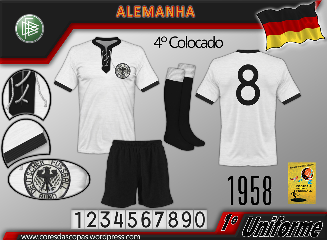 A Seleção Alemã usou apenas um uniforme nas 6 partidas que disputou nessa Copa, a tradicional combinação de camisa branca com calção preto e as meias que até então também eram pretas.