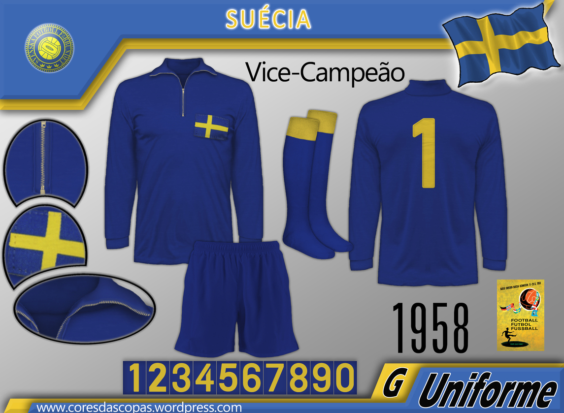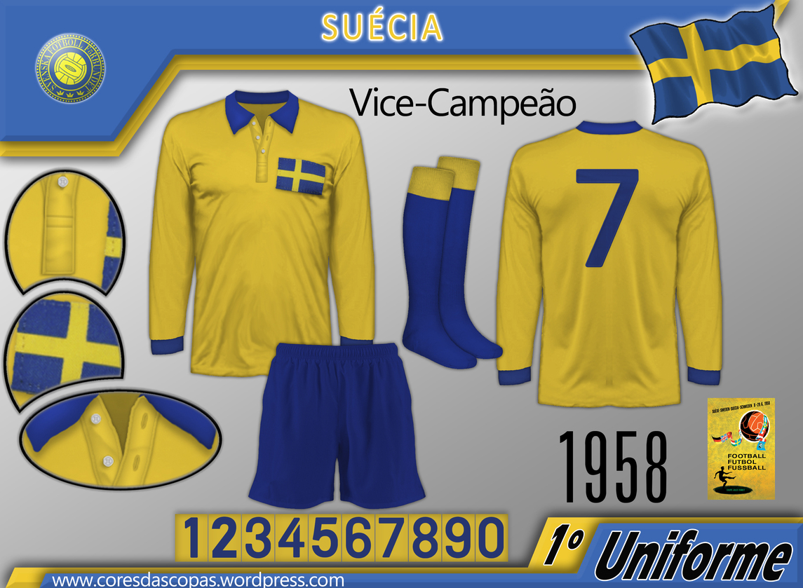 Nessa Copa a Seleção Sueca disputou todas as partidas com seu uniforme tradicional, camisa amarela com a bandeira nacional no peito com calção e meias azuis.