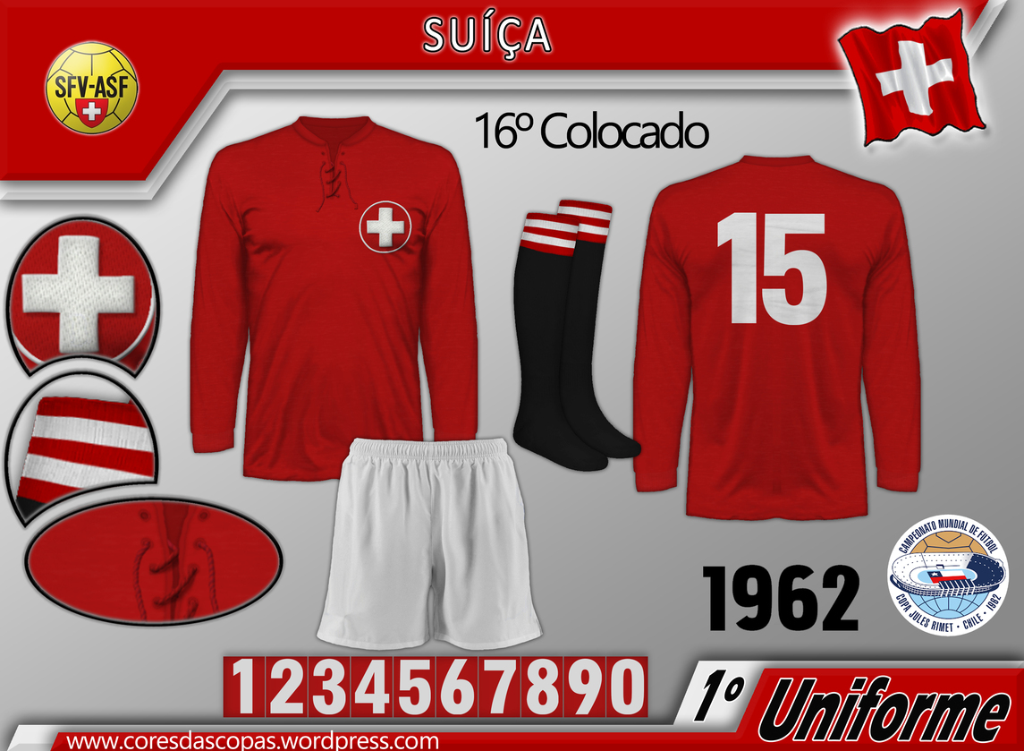 Apesar de disputar apenas 3 partidas nesse Mundial os suíços não repetiram o uniforme nenhuma vez. Na estreia, eles usaram o considerado “uniforme titular”, camisa vermelha com a cruz branca no peito, calção branco e meias pretas com detalhes em vermelho e branco.