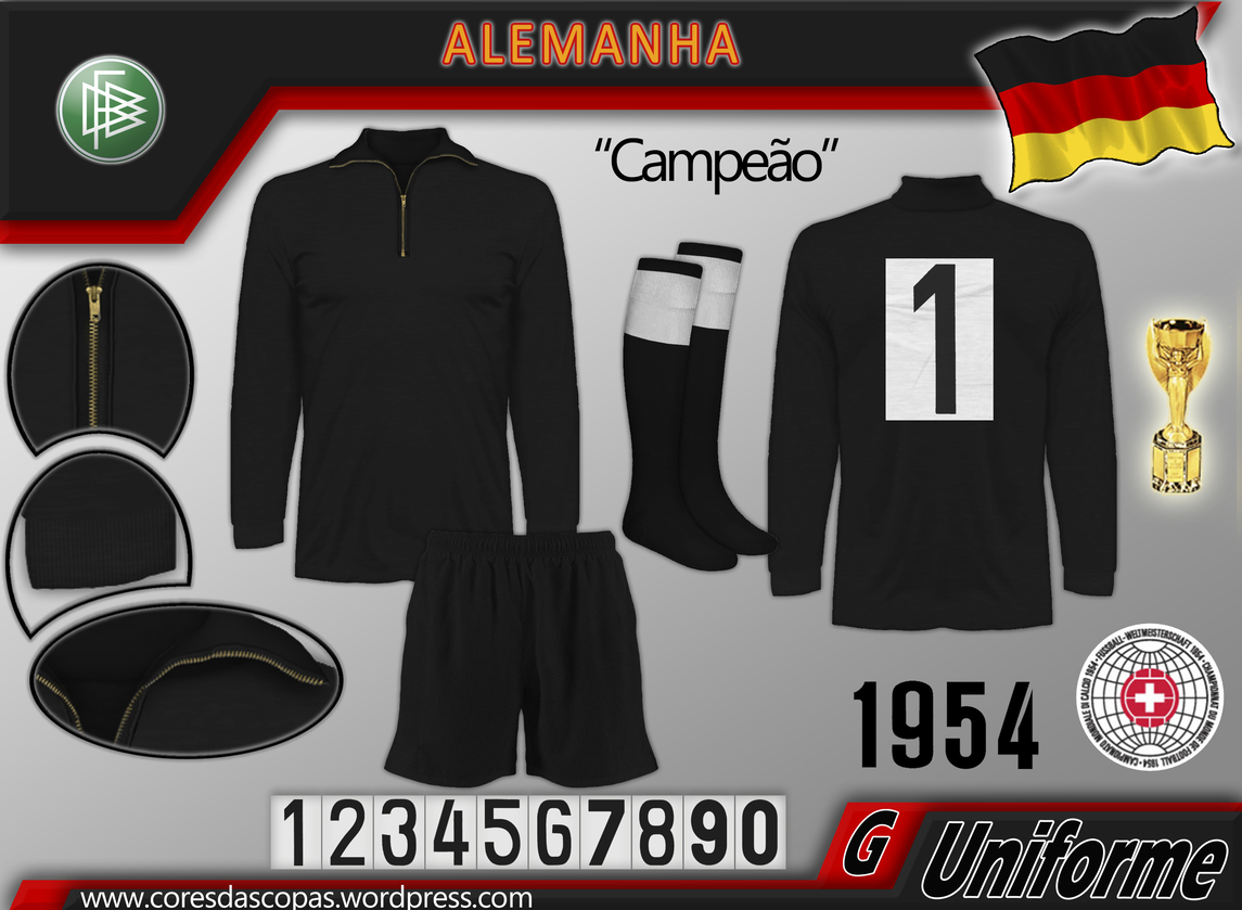 Em 1962, a Alemanha manteve seu tradicional uniforme: camisa branca com golas pretas e calção preto, variando apenas as meias entre o preto e o branco — um visual clássico, inspirado nas cores da Prússia.