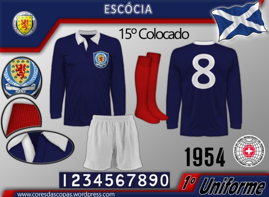 A Seleção da Escócia usou combinações de uniforme diferentes em todas as partidas que disputou. O uniforme principal com camisa azul escura, calção branco e meias azuis foi usado apenas na partida contra o Paraguai.