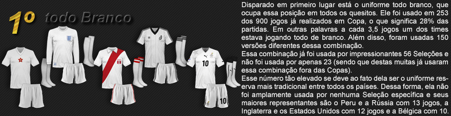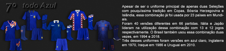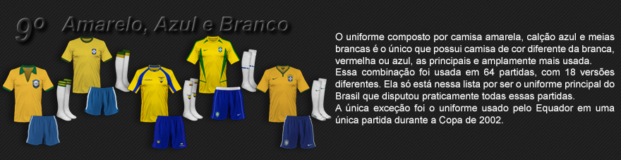 A alguns anos o uniforme todo preto era exclusivo para os árbitros, mas está sendo cada vez mais usado e com 9 partidas em mundiais ocupa a 44ª colocação.